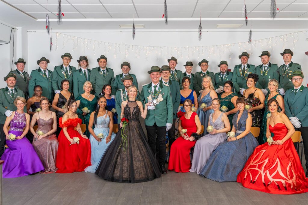 Vordere Reihe v.l.: Vera Nünnerich, Verena Vorwerk, Renata Goncalves Olla, Jennifer Buruk, Königspaar Nicole & Marcel Krueger, Sandra Schmücker, Maren Holtkötter, Anja Tiemann, Sabrina Bösch